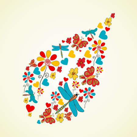 春の花 トンボと心葉の形状の背景 ベクトル イラストを簡単に操作およびカスタム着色層します のイラスト素材 ベクタ Image